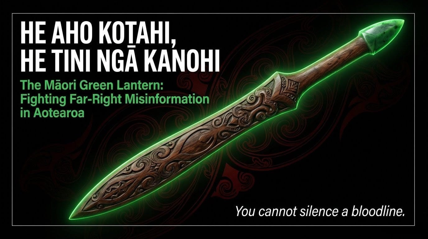 One writer. One voice. One kanohi in the digital dark, raising a taiaha against the empire of misinformation that has colonised Aotearoa's information ecosystem. They assume lone warrior. Lone risk. Lone vulnerability. They assume — as colonial power always assumes — that what stands before them is isolated, and therefore destroyable.