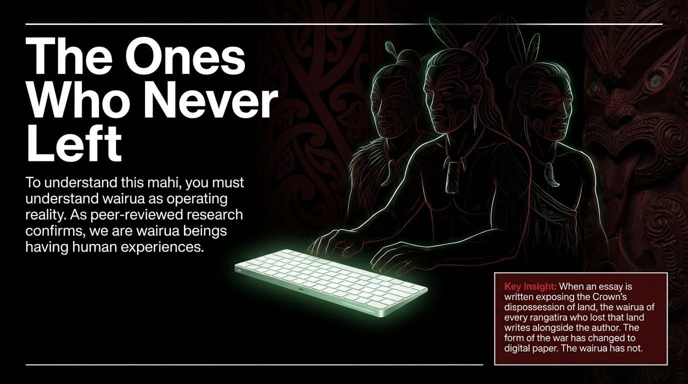 Te Ara Encyclopedia documents that wairua is the spirit of a person that continues after death, capable of returning and guiding the living. This is not folklore. This is an epistemological framework as rigorous within Mātauranga Māori as empirical science is within Western methodology. As recent peer-reviewed research in the Journal of the Royal Society of New Zealand confirms, for Māori, "we are wairua beings that have human experiences," with the wairua operating "across multiple dimensions of time and space to attain the tools and knowledge the individual needs to navigate waking life."