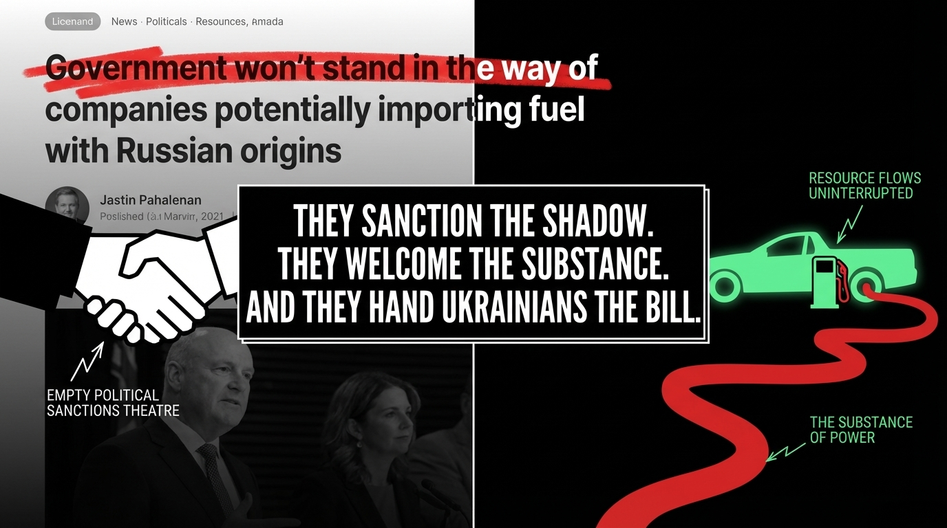 They sanction the shadow. They welcome the substance. And they hand Ukrainians the bill.