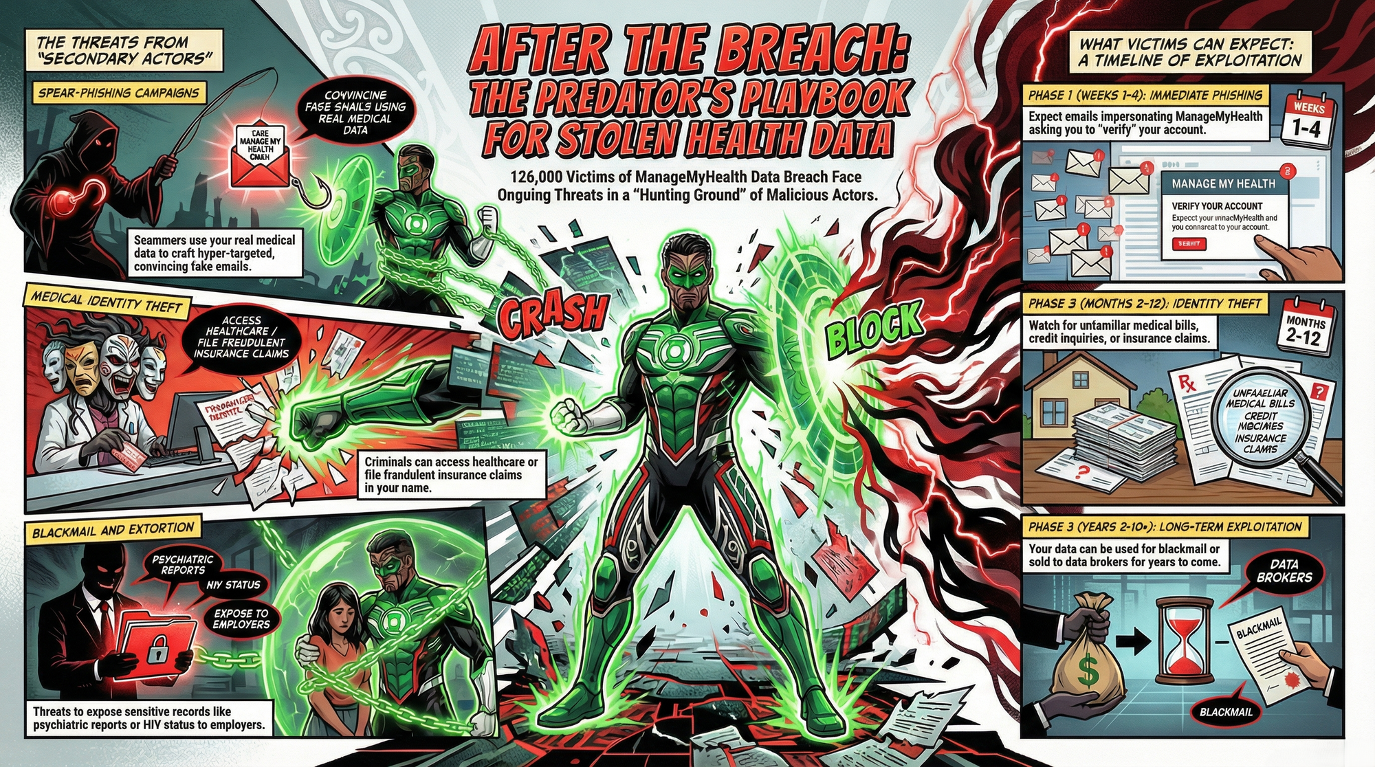 When ManageMyHealth warns about “secondary actors” three weeks after the breach, they’re not protecting you—they’re protecting themselves from liability.
