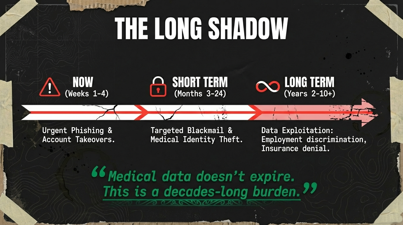 Once medical data hits the dark web—and 126,000 people’s health documents are now confirmed stolen—it becomes a commodity traded, resold, and weaponized by multiple criminal networks.