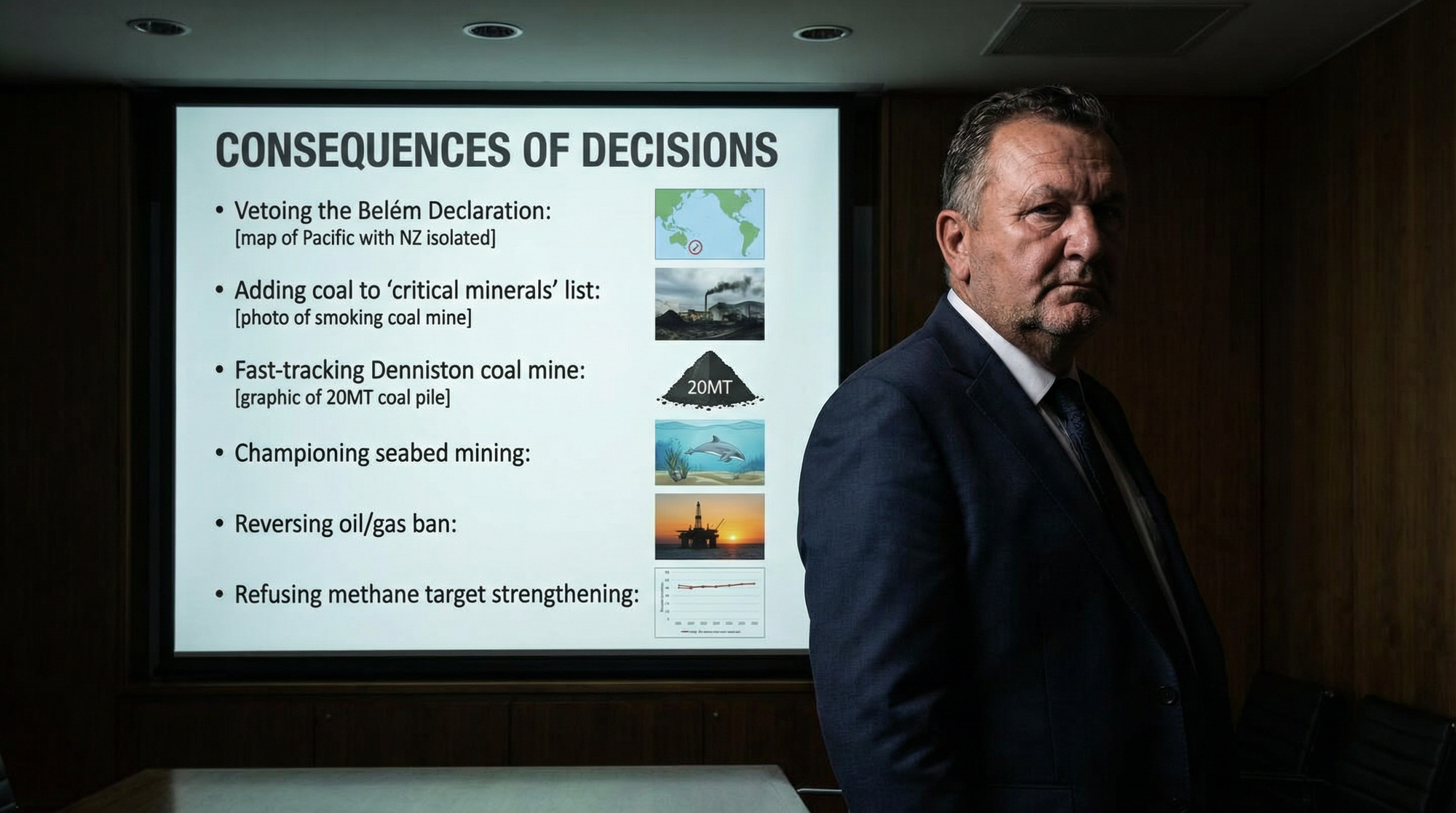 These are not the actions of someone pursuing “pragmatic” energy policy. These are the actions of someone captured by extractivist ideology, where the only future imaginable is one where foreign corporations loot Aotearoa’s whenua and moana while leaving taxpayers with the cleanup bill and future generations with the climate catastrophe.