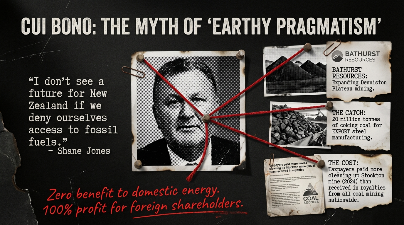 Cui malo? Who is harmed? Pacific Island nations facing existential threats from rising seas, coastal erosion, and climate displacement. Māori communities exercising kaitiakitanga over whenua and moana. Young people inheriting a climate crisis that officials warned would damage diplomatic relations and give China strategic openings in the Pacific. All sacrificed on the altar of Jones’s “earthy, pragmatic approach”—a euphemism for extractivist capitalism dressed in working-class drag.