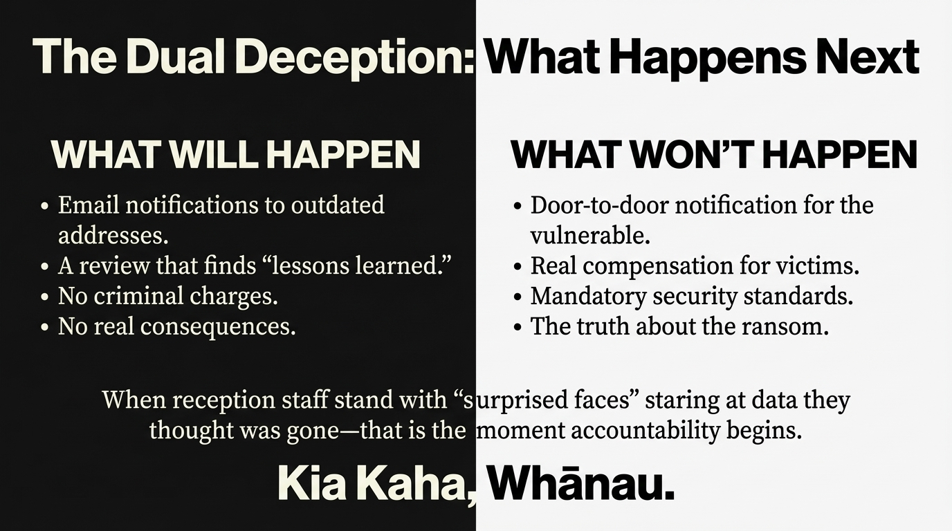 When the posts disappear and the shocked faces appear—when the hacker goes silent and the GP clinics contradict each other—that’s when you know the system has collapsed at every level.