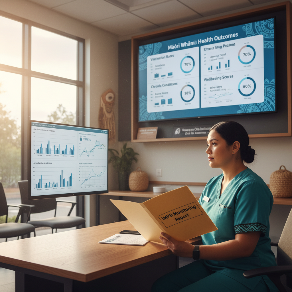 Māori health worker with IMPB monitoring data—voice without power