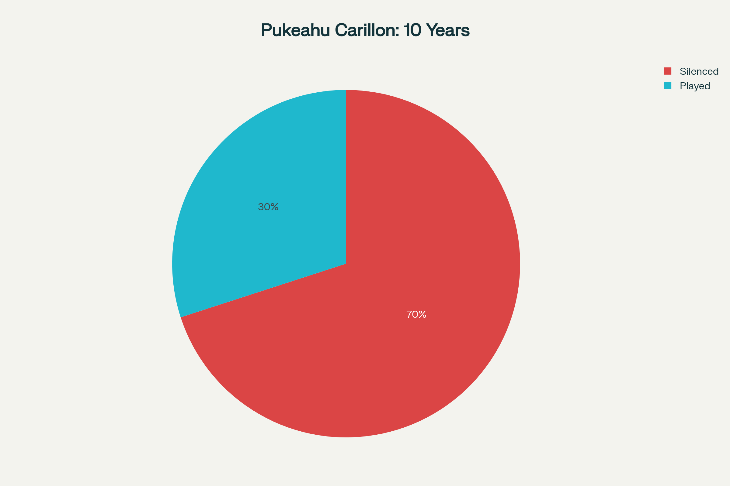 Proportion of years the Pukeahu carillon was silenced versus played over the past decade