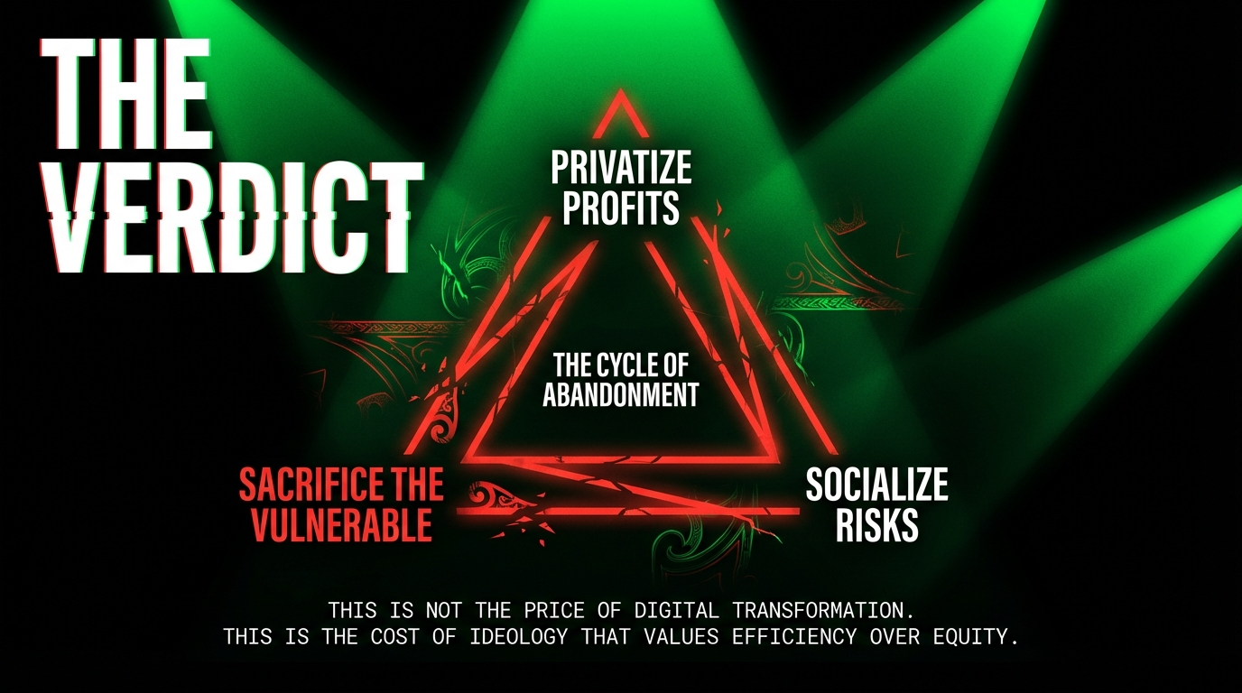 This is not the price of digital transformation. This is the cost of ideology that values efficiency over equity, profits over protection, and treats the most vulnerable as acceptable collateral.
