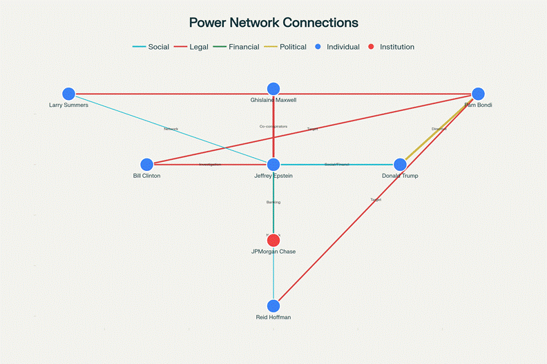 This is political jiu-jitsu: deploy state power against political enemies while denying your own exposure. The directive to investigate Clinton, Summers, Hoffman, and JPMorgan appears to promise transparency while achieving the opposite—it shifts DOJ resources away from investigating Trump’s own Epstein ties and toward investigating Democrats.