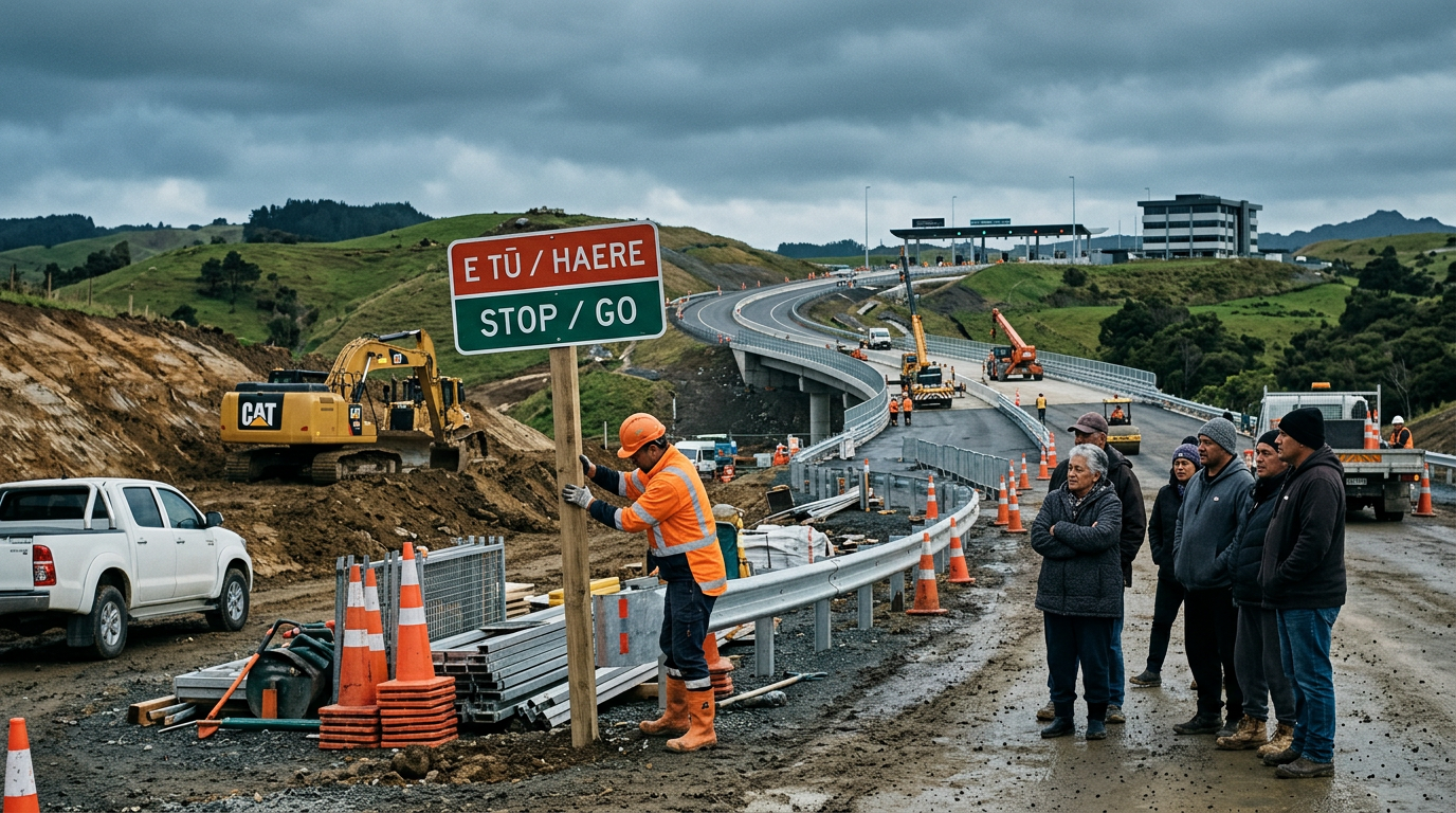 In May 2025, as reported by Te Ao Māori News, Waka Kotahi ordered the removal of te reo Māori stop-go signs — reading "Taihoa" and "Haere" — from roadworks in Ngāti Kahungunu territory, after a single "frustrated" driver complained. Ngāti Kahungunu chair Bayden Barber said it plainly: "This is not about rules — it's about racism."