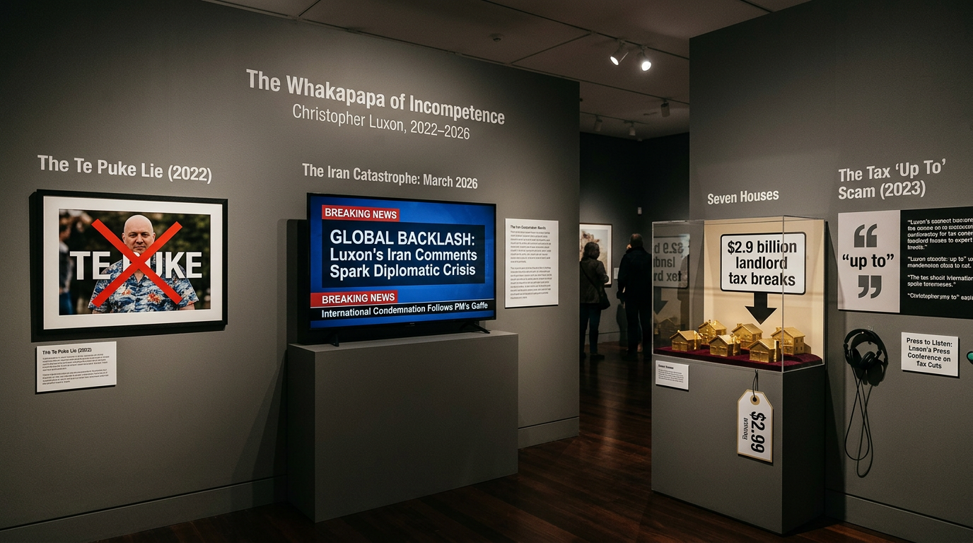 - The Seven Houses (2023): Luxon owns seven properties, benefits from his own government's $2.9 billion landlord tax breaks, with the CTU calculating that 346 mega-landlords would pocket $1.3 million each over five years.
