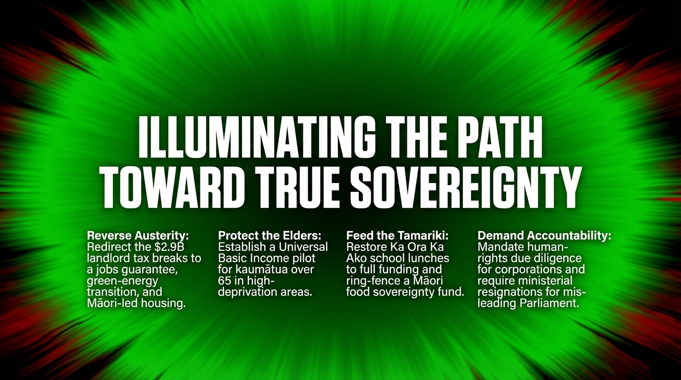 The solution: Reverse the austerity programme. Redirect the $2.9 billion landlord tax break to a jobs guarantee, Māori-led housing construction, green-energy transition, and community-based employment.