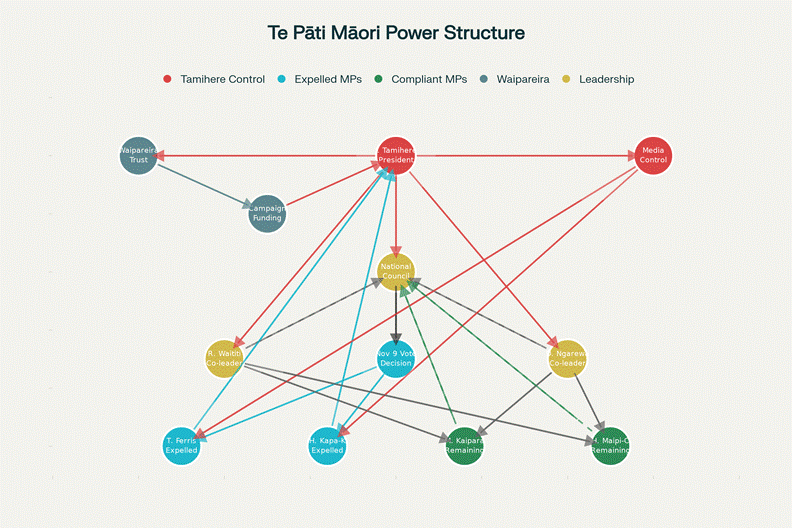 Fast-forward to November 2025. John Tamihere—party president, CEO of Waipareira Trust, key architect of leadership strategy—now sits at the nexus of a power consolidation apparatus that operates through three interlocking mechanisms:
