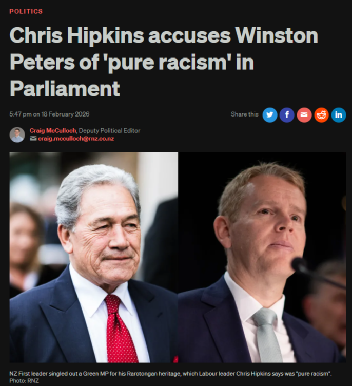 18 February 2026: The Tuiono attack. "Pure racism," as Chris Hipkins said rising to his feet.