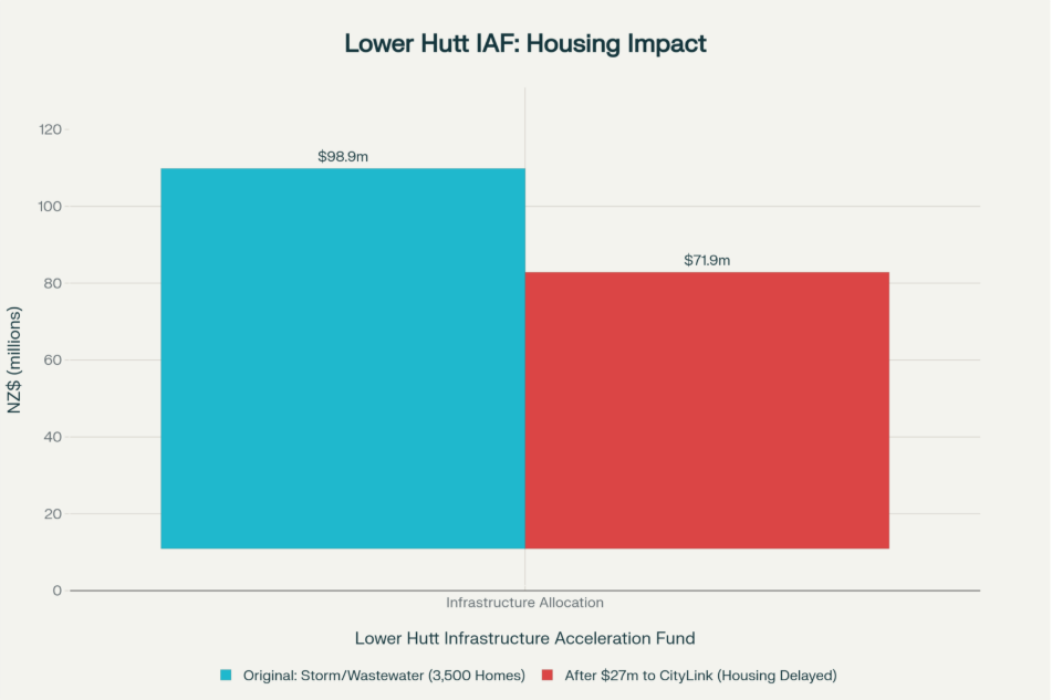 The Infrastructure Acceleration Fund agreement between Kāinga Ora and Hutt City Council (November 2022) ring-fenced $98.9 million specifically for stormwater and wastewater upgrades to enable housing development in Lower Hutt—an essential precondition for 3,500 new homes, including papakāinga, public housing, and affordable rentals.