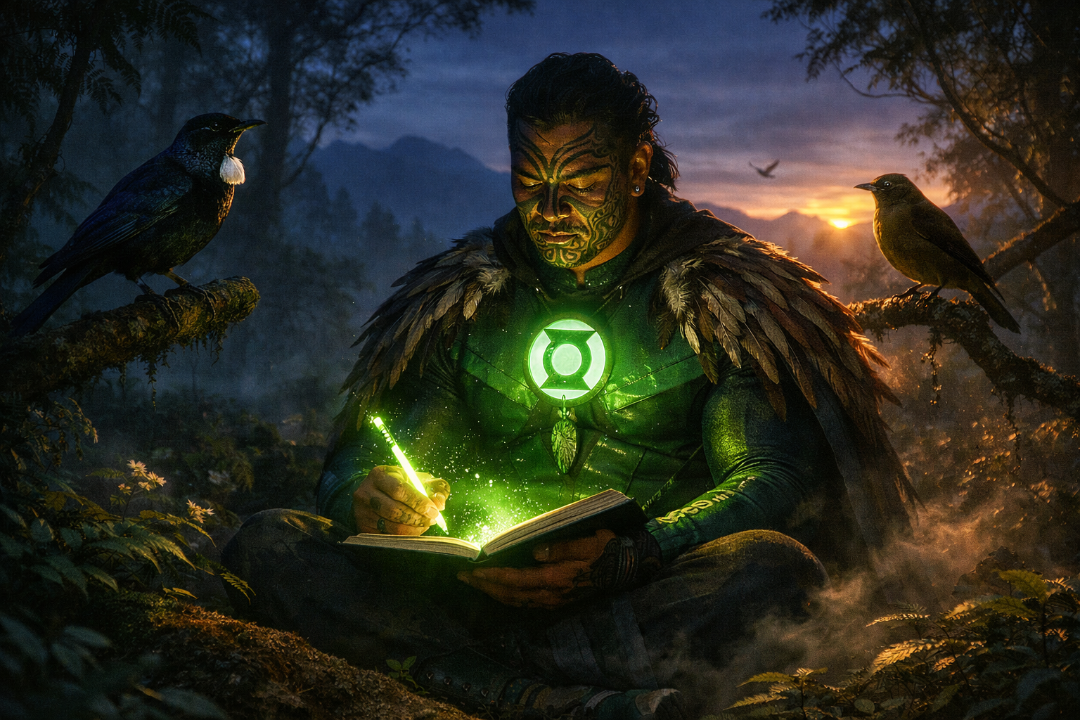 When the Māori Green Lantern wakes at 4 am, in the darkness before dawn, and hears the tūī’s first call, they are receiving a message from the ancestors. Not in mystical imagination, but in documented, verifiable fact: