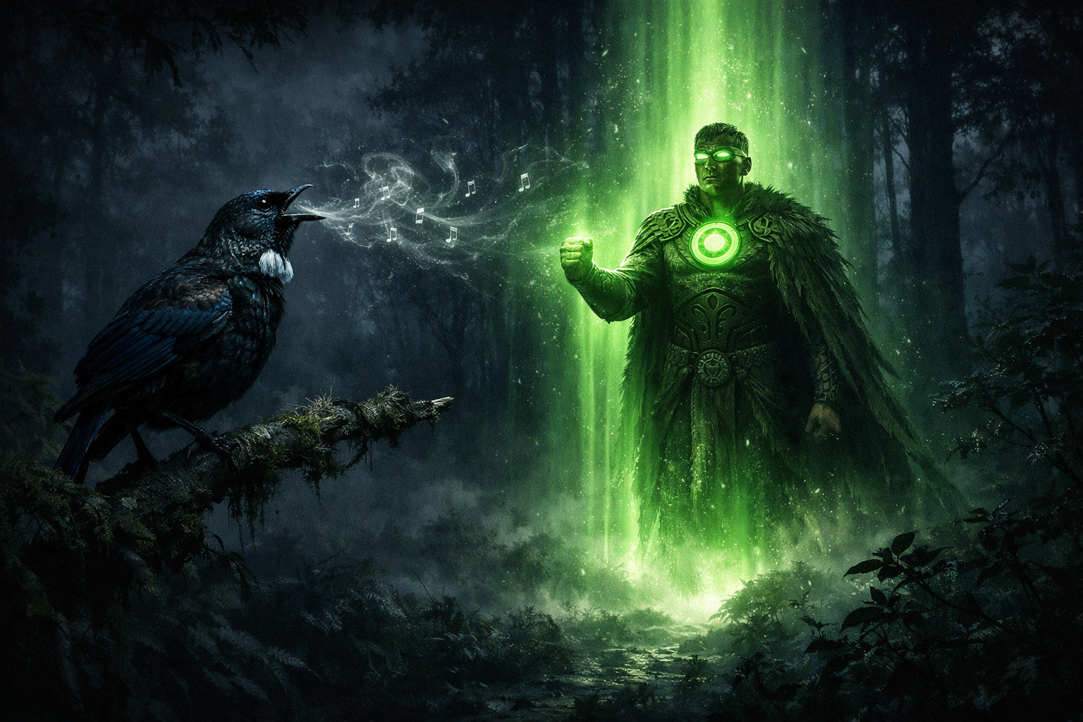 “Te Waha o Tāne: The Tūī’s Song at Dawn — How the Voice of the Forest God Calls the Māori Green Lantern to Truth-Telling” - 24 December 2025