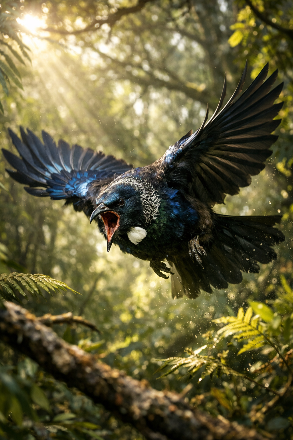 The tūī does not tolerate encroachment. It does not compromise. It does not negotiate with invaders in its territory.