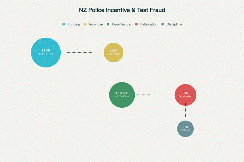 In October 2025—just weeks before this drug testing rollout was announced as finalized—New Zealand police revealed a scandal that exposes the catastrophic failure of this government’s enforcement model: 120 police officers fabricated 30,961 breath tests between July 2024 and September 2025.[15]