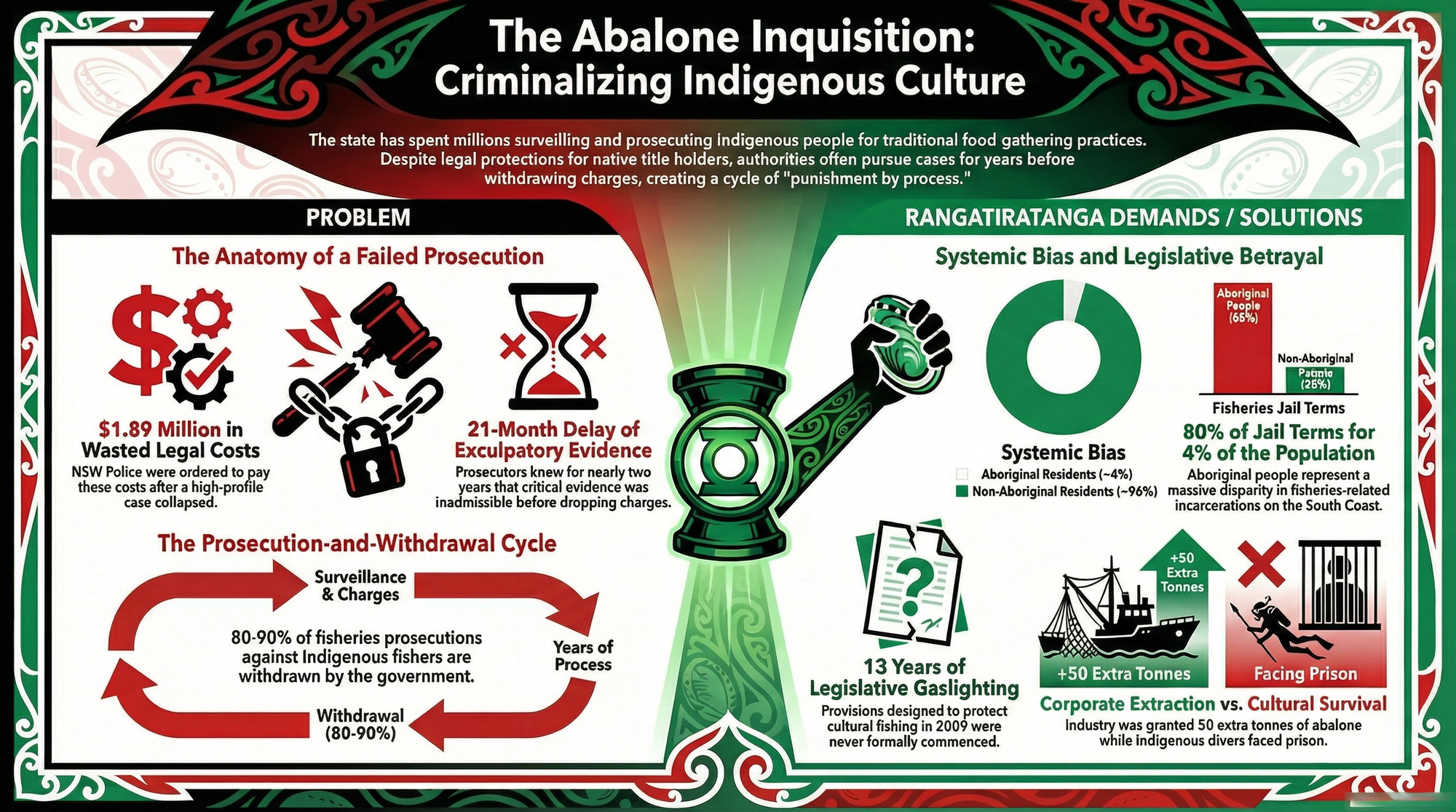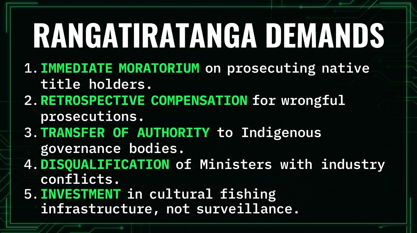 The solution: Immediate moratorium on all prosecutions of native title holders for cultural fishing. Retrospective compensation for all wrongful prosecutions. Transfer of fisheries management authority to Indigenous governance bodies.