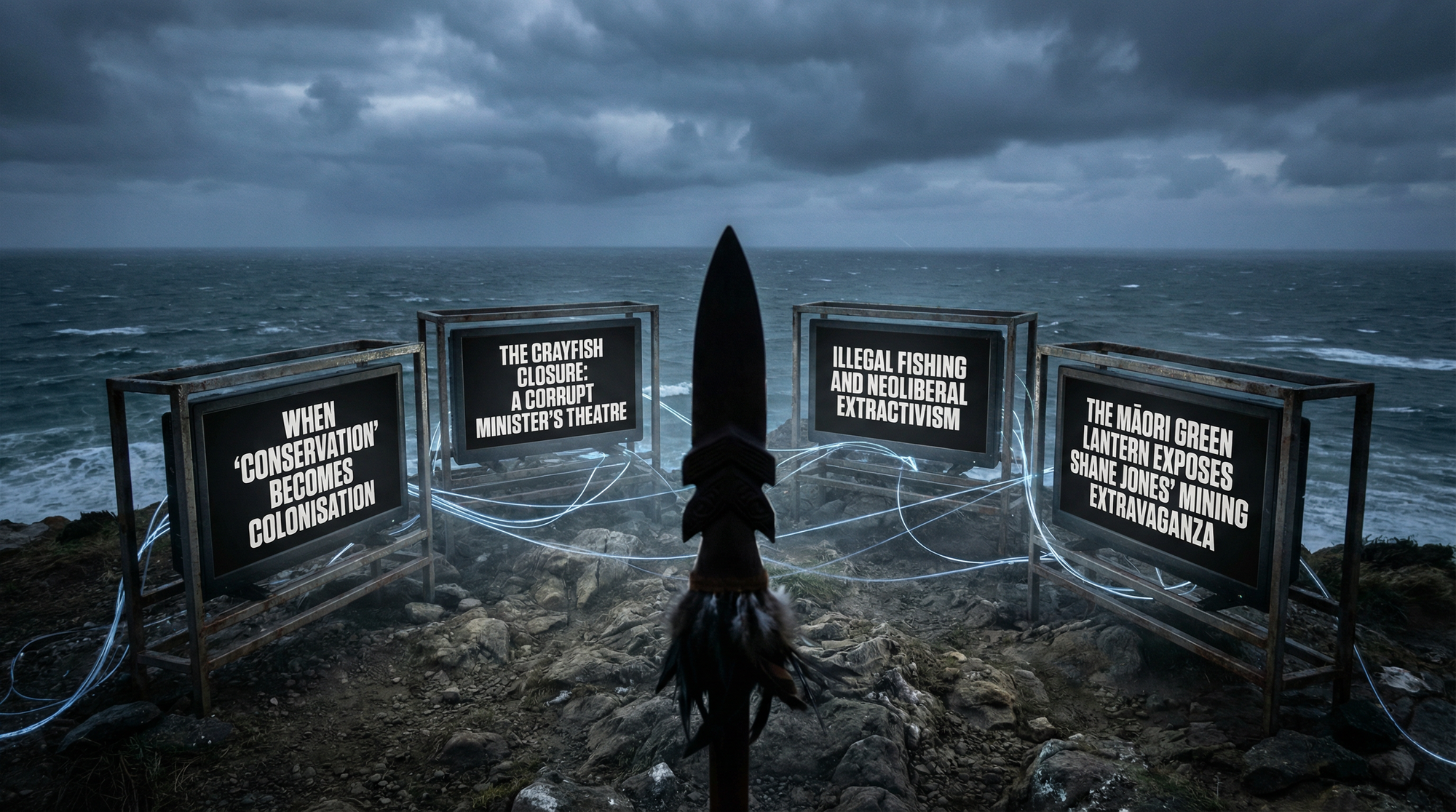 - "When 'Conservation' Becomes Colonisation" exposed how three corporate entities control 57% of fishing quota while iwi crowdfund pāua restoration, and how Shane Jones' reforms serve industry donors over ecological survival.