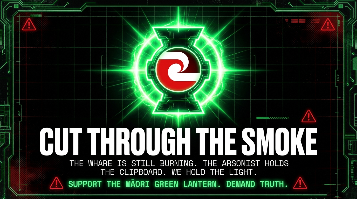 Every koha signals that whānau are ready to fund the accountability that arsonists with clipboards will never provide. It signals that rangatiratanga includes the power to fund our own fire investigators — the ones who name the accelerant, trace the match, and demand the whare be rebuilt.