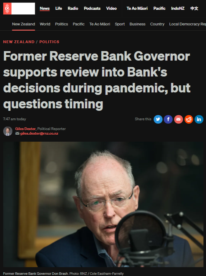 This man now declares that an ex-post review of the Reserve Bank's pandemic decisions "almost certainly" makes sense, as reported by RNZ.