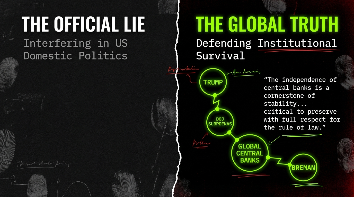 Trump is not engaging in “internal domestic affairs.” He is weaponizing the Department of Justice to criminalize a Federal Reserve Chair for refusing to subordinate monetary policy to presidential preferences. This is an assault on democratic institutional independence that threatens the global financial system’s stability.