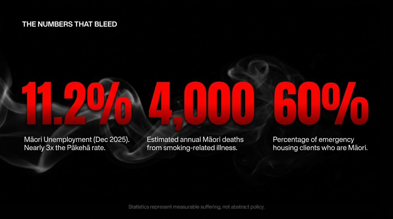 When 42,000 people marched on Parliament in November 2024 in what was likely the largest protest in New Zealand's history, that wasn't rhetorical flourish. When the Waitangi Tribunal declared the Treaty Principles Bill would be "the worst, most comprehensive breach of Te Tiriti in modern times", that wasn't rhetorical flourish. When Māori unemployment hit 11.2 percent in December 2025—nearly three times the Pākehā rate—that was not flourish. That is a body count.