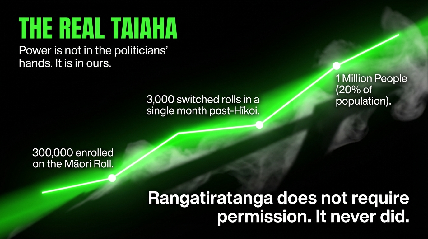 The taiaha is not broken. It was never in Jackson's hands. It is in the hands of the iwi, the hapū, the whānau, the rangatahi who marched, who enrolled, who refuse to accept either the coalition's open assault or Labour's performative solidarity.