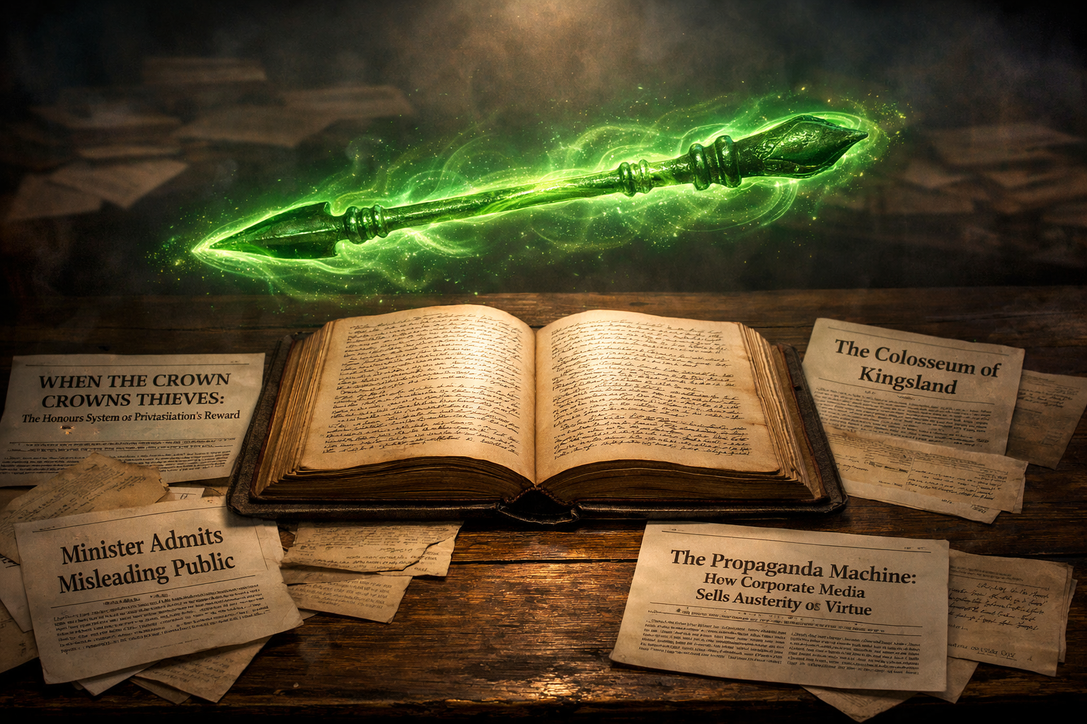 - "WHEN THE CROWN CROWNS THIEVES: The Honours System as Privatisation's Reward" — exposing how the honours system rewards those who privatise healthcare