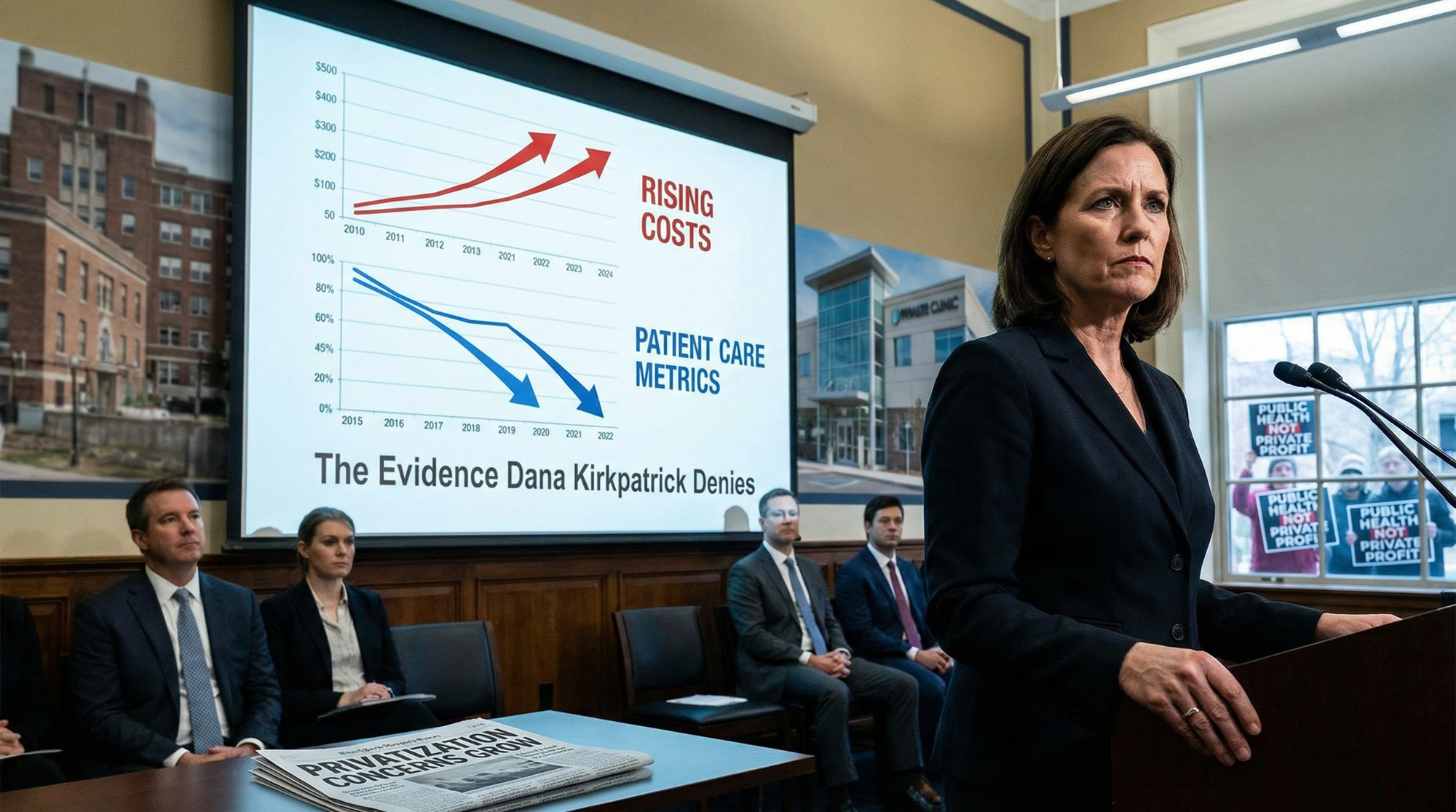 - Directed $50 million in public funds to private hospitals for permanent outsourcing