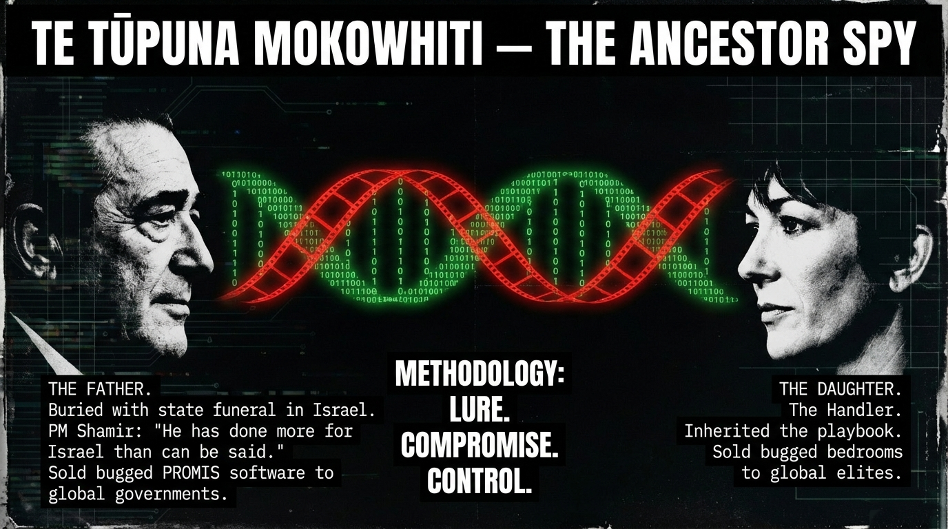 In intelligence tradecraft, that is called an acknowledgment of covert service. In te ao Māori, we call it what it is: he whakapapa huna — a hidden genealogy, as The Māori Green Lantern documented in "The Honey Trap Whakapapa: How an Israeli Billion-Dollar Blackmail Machine Weaponised Children to Control the World".