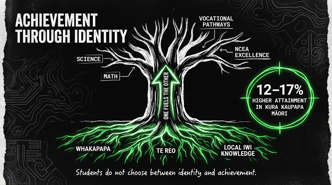 That gap is not explained by wealth. It is explained by leadership, culture, and curriculum that centre Māori knowledge and identity.