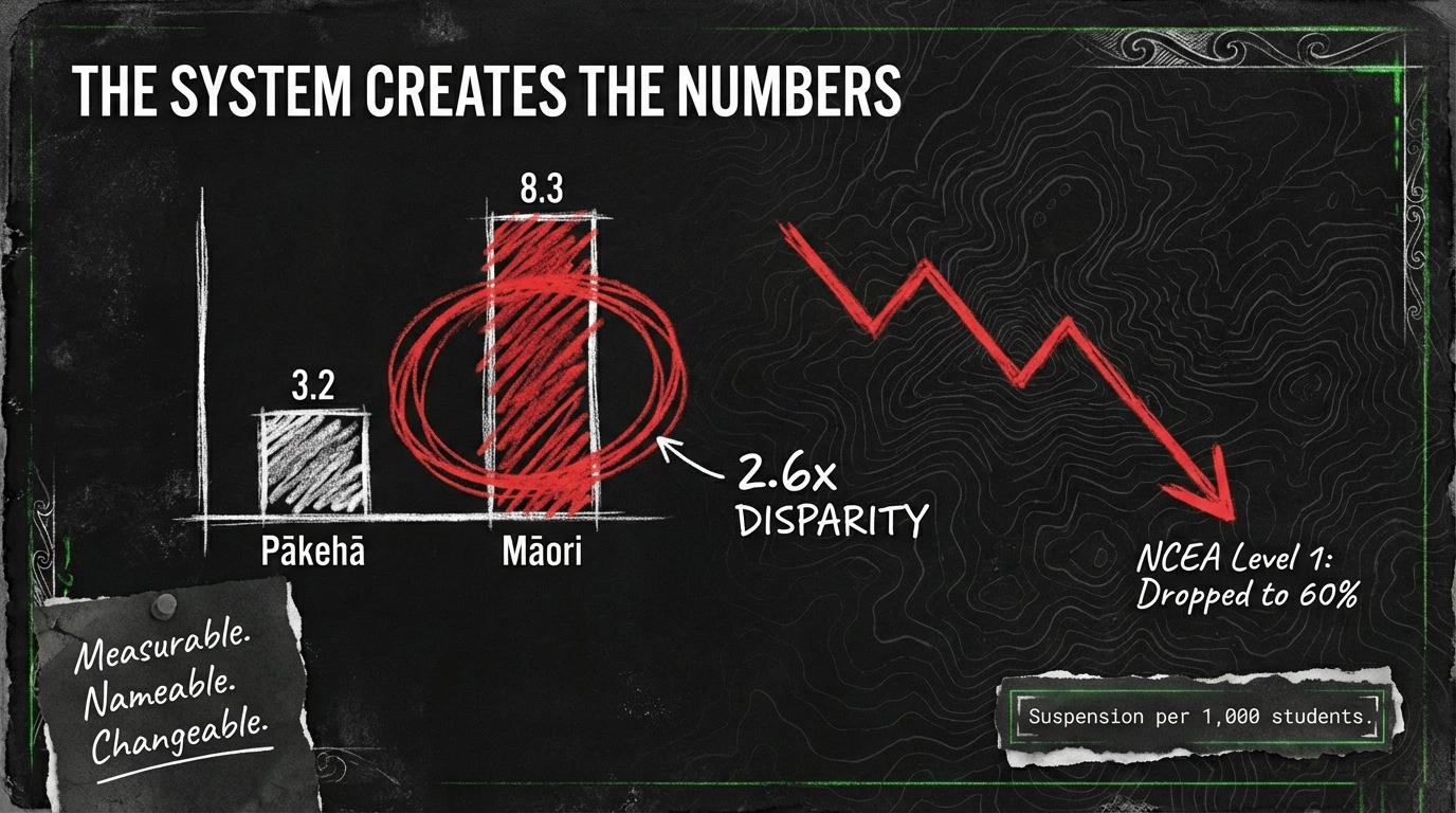 Dismantle exclusionary discipline. Replace suspension and stand-down with restorative hui. Watch the 2.6 to 1 suspension ratio between Māori and Pākehā students start to close.