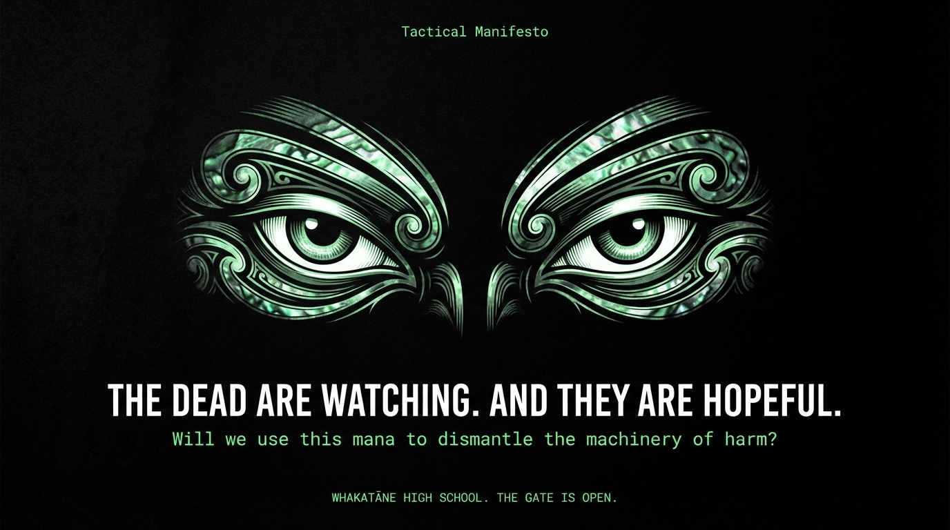 The tūpuna are watching. The ancestors who survived colonisation, who kept te reo alive, who transmitted whakapapa through whānau despite every institutional attempt to erase it—they are watching. The Māori students currently being suspended (1,999 in 2023 alone) are watching. The young people about to enter secondary school are watching.
