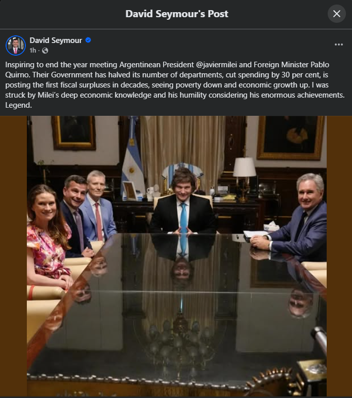 David Seymour did not travel to Argentina for trade talks over US$63.4 million in exports. He traveled to pay homage. To study. To pledge allegiance to a transnational movement coordinating attacks on democracy, indigenous rights, and social protections worldwide.
