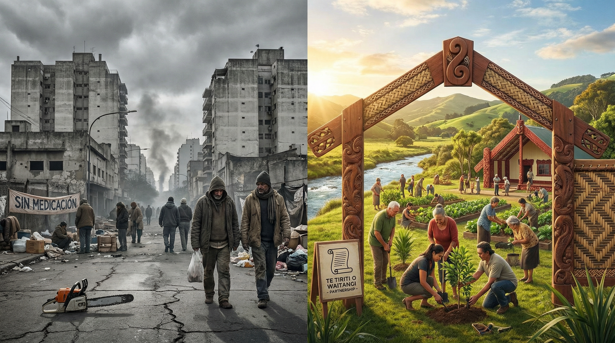 Not Argentina’s women, one murdered every 33 hours. Not Argentina’s cancer patients, whose screening programs were suspended. Not Argentina’s workers, 406,000 of whom dropped out of social protection systems within weeks when contribution requirements changed. Not New Zealand’s Māori, whose Treaty rights Seymour seeks to define out of existence.