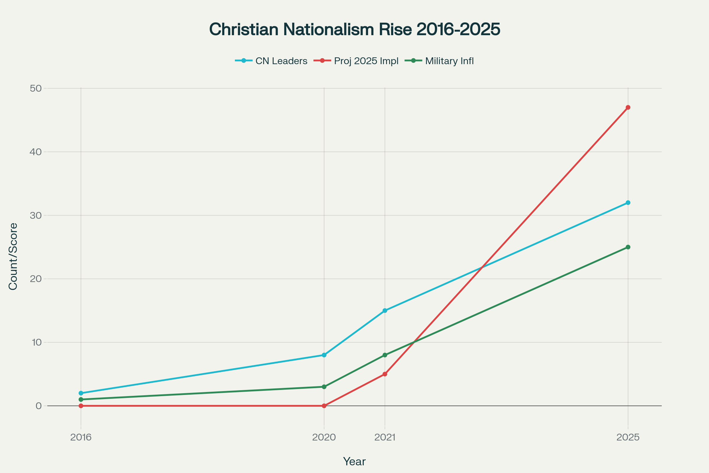 The exponential growth of Christian nationalist influence in American government from Trump’s first term through his return to power in 2025
