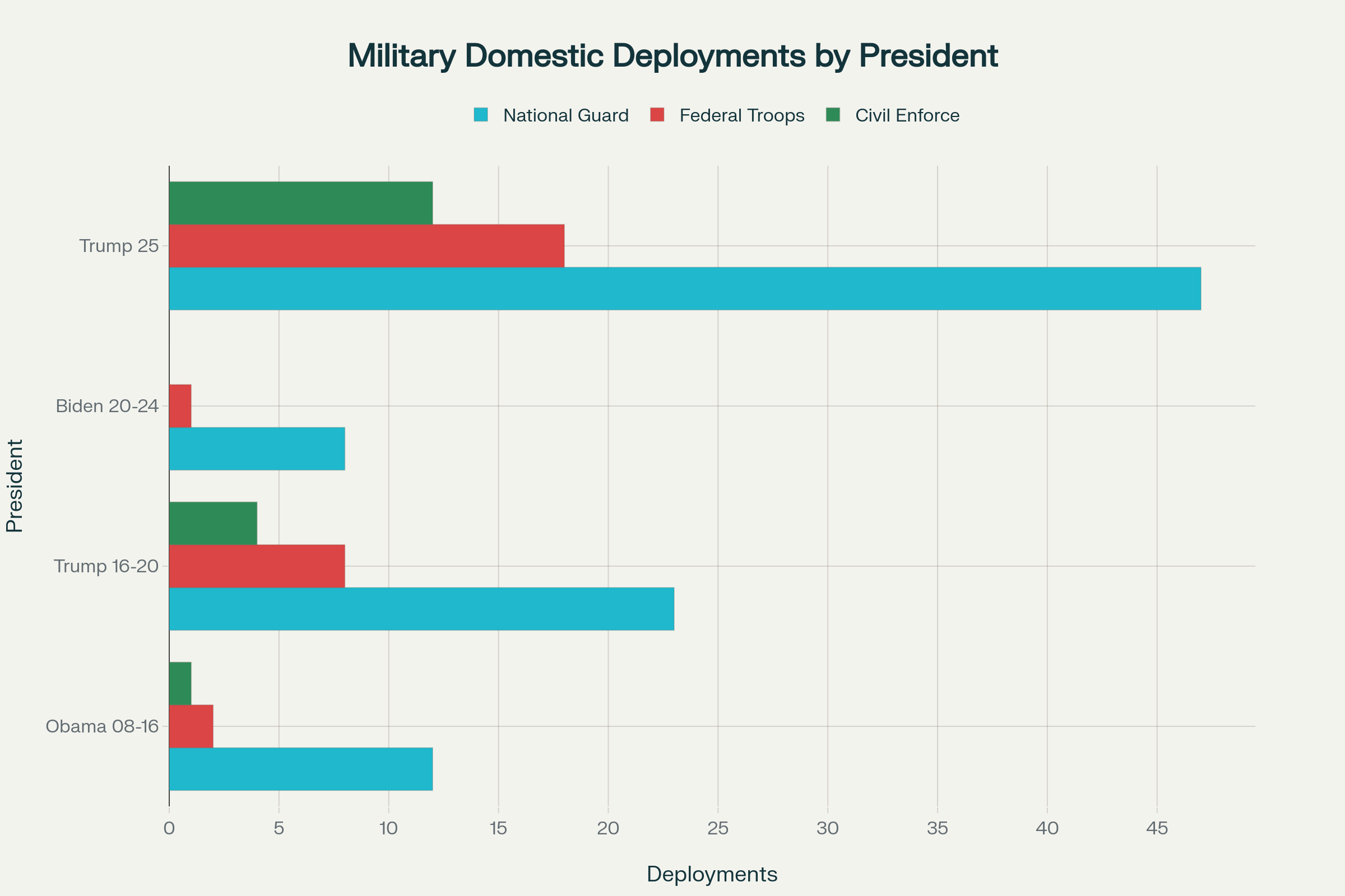 Dramatic escalation in military domestic deployments under Trump’s second term compared to previous administrations