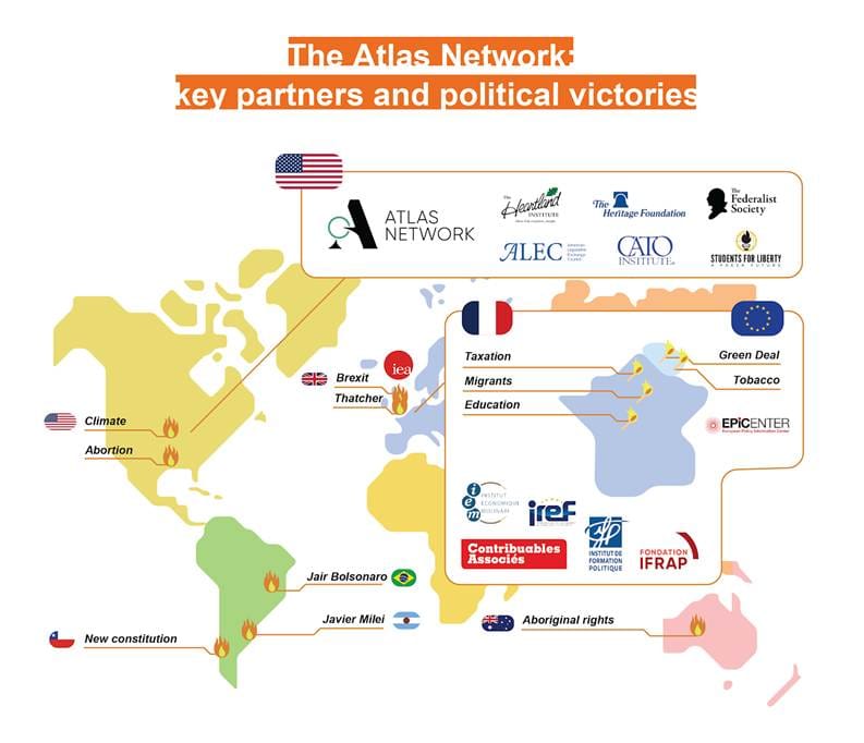 The Atlas Network’s global influence and key political issues linked to right-wing think tanks