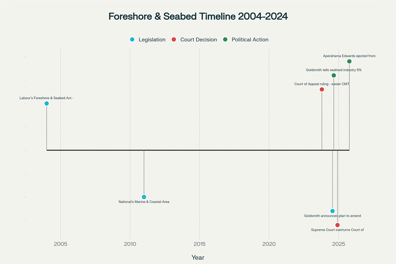 The Foreshore and Seabed Controversy: A Timeline of Legislative Changes and Māori Resistance (2004-2025)