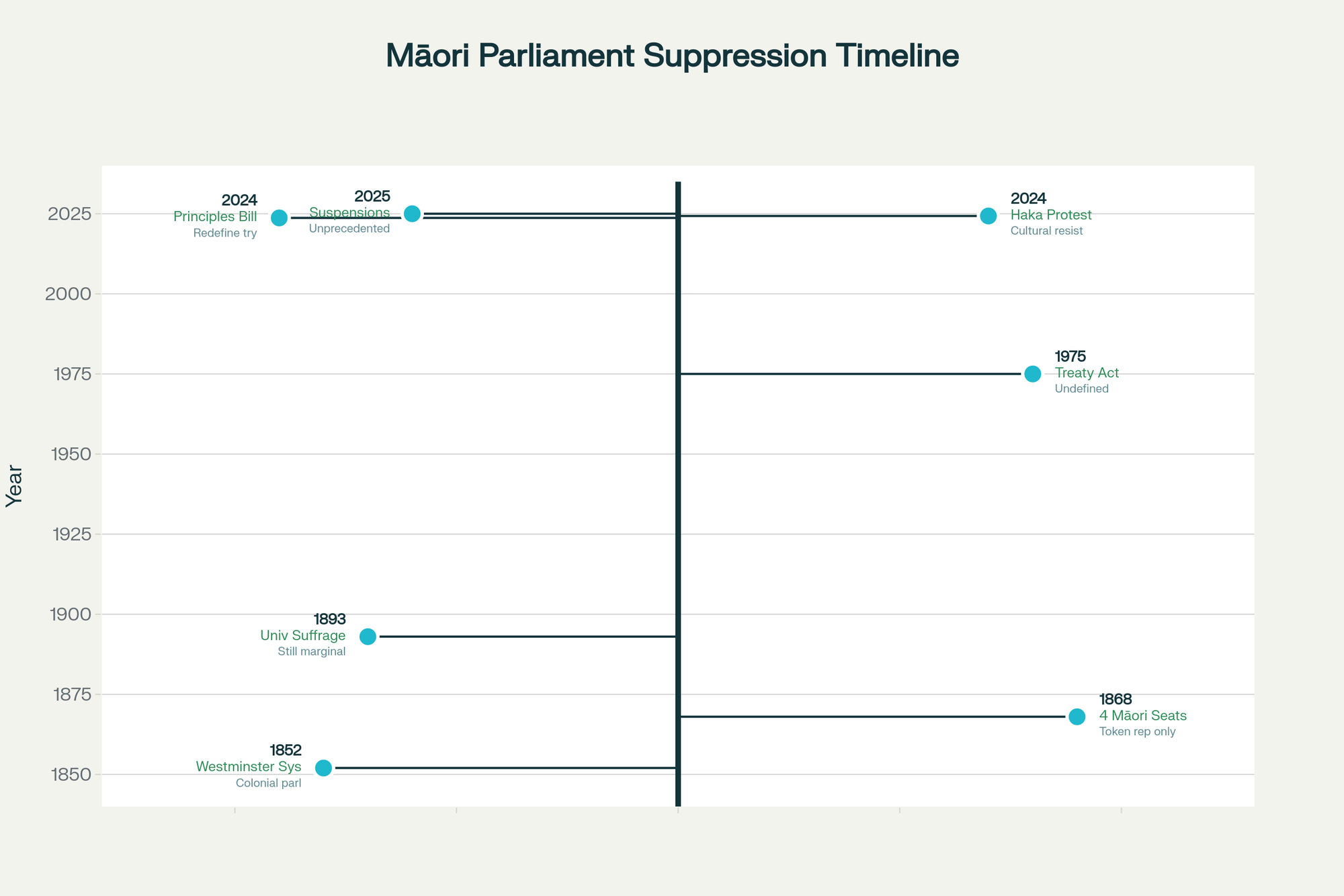 Timeline of colonial suppression and Māori resistance in New Zealand Parliament from 1852-2025