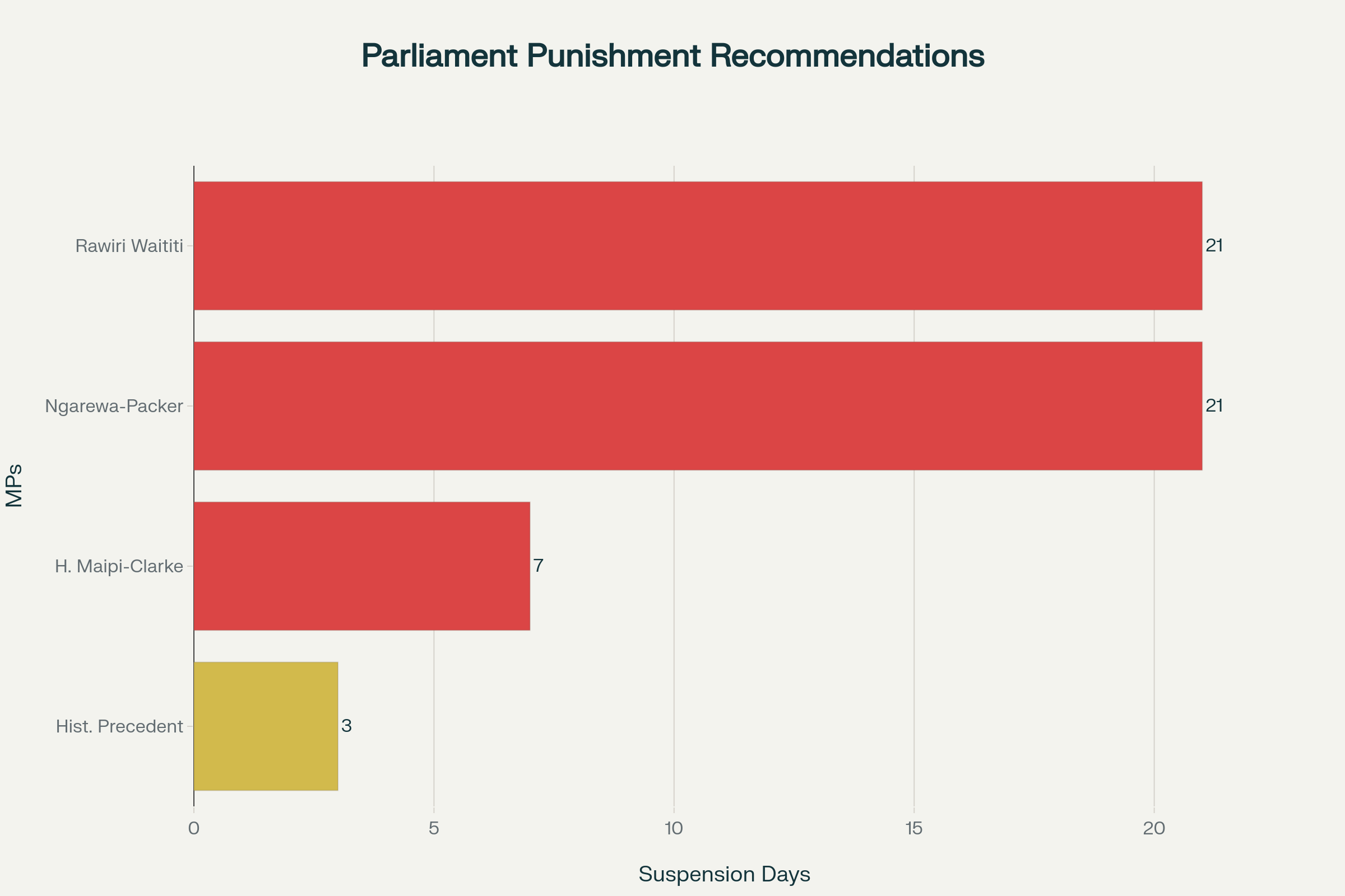 The institutional response reveals the true nature of parliamentary "democracy." Privileges Committee chair Judith Collins orchestrated the most severe punishments in Parliament's 171-year history, demonstrating what happens when Māori refuse to play by colonial rules.