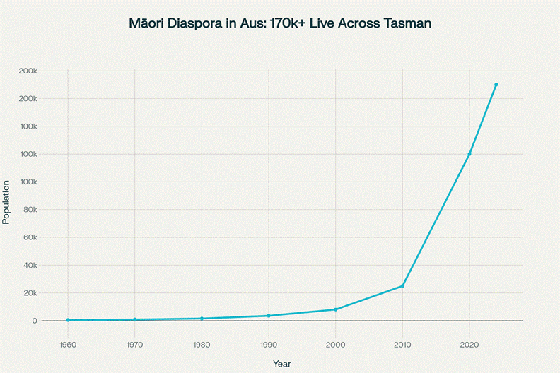 Consider the quantified harm: 170,000 Māori now live in Australia—20% of the global Māori population—an increase of 36,857% since the 1960s. This diaspora stems from systemic economic marginalisation within Aotearoa: Māori flooded to Australia seeking opportunities denied at home. Now their tamariki and mokopuna born offshore face a cruel irony—descendants of people pushed out by colonial economic structures are denied legal recognition of their indigeneity because they left.[2][3][8][9][10][11][12]