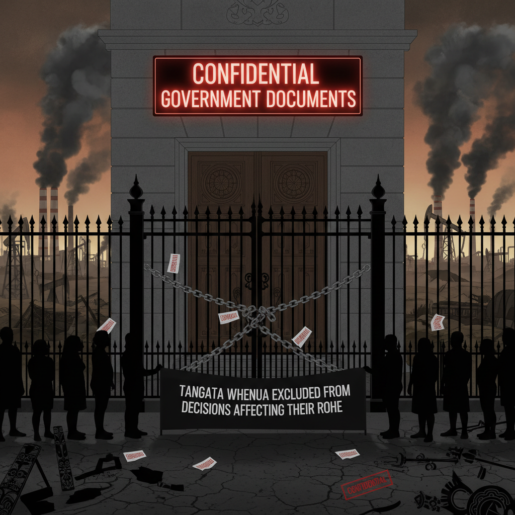 - Access asymmetry: Industry gets confidential briefings. The public and iwi get nothing.