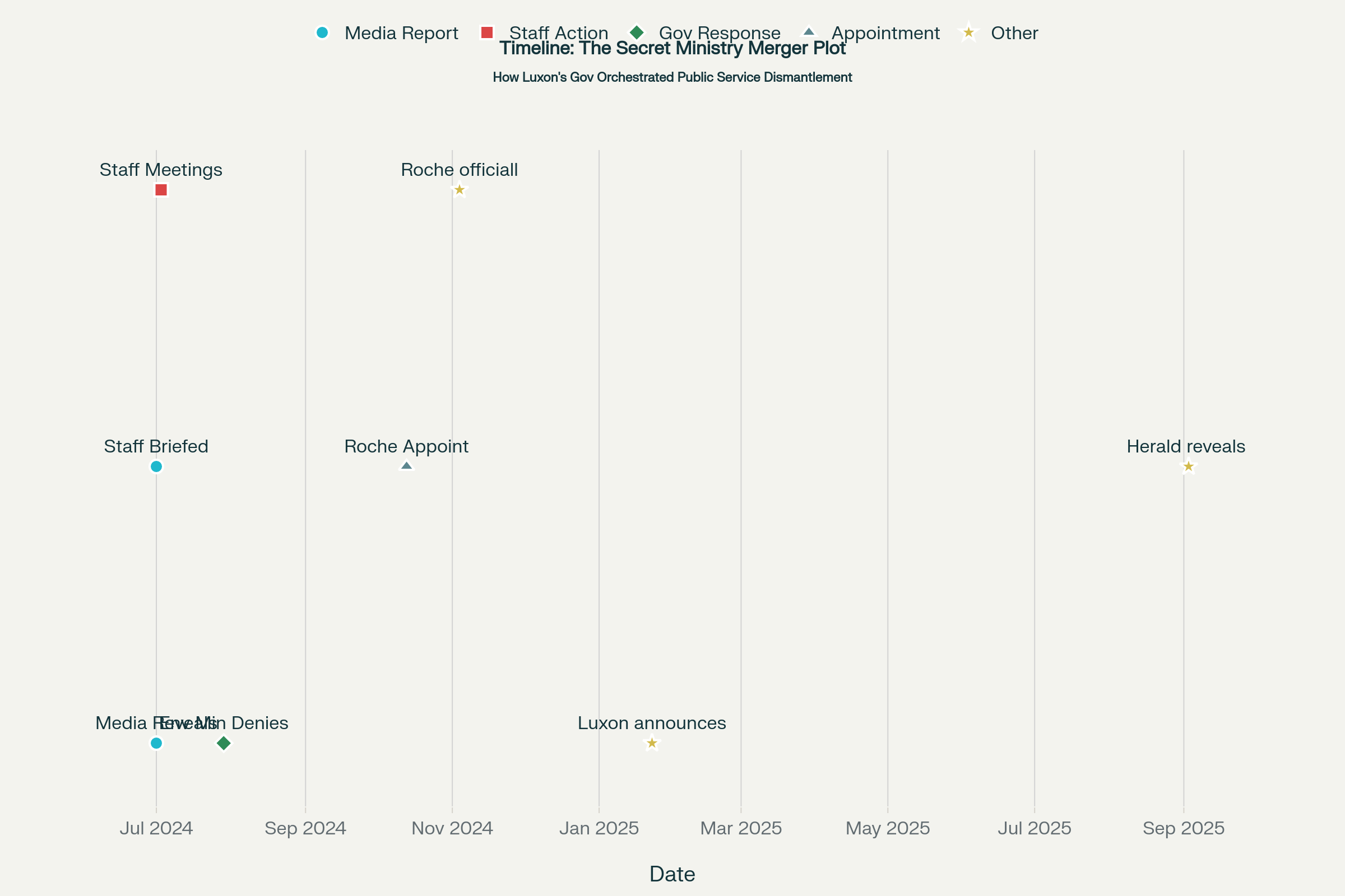 The timeline reveals a coordinated campaign of deception. When BusinessDesk first reported the merger speculation on July 1, 2024, ministry leaders immediately went into damage control mode, sending identical "media story this morning" emails to staff. The manufactured urgency and secrecy mirror classic shock doctrine tactics - create confusion and fear to ram through unpopular changes.