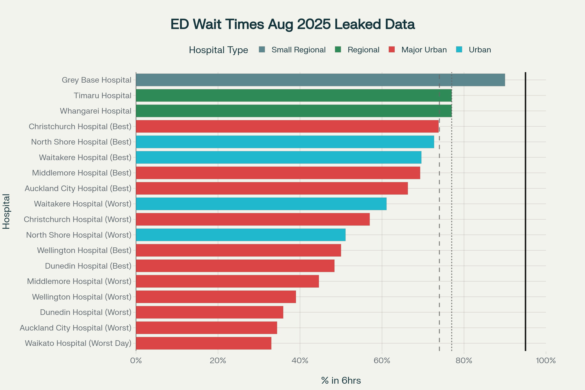 Let me cut through the political spin with the brutal truth: while our whānau die waiting in emergency departments, this National-ACT-NZ First coalition government is orchestrating the systematic destruction of our public health system to feed their privatisation agenda. The leaked emergency department data showing catastrophic failure across our major hospitals is not an accident - it is the deliberate result of neoliberal sabotage designed to justify handing our healthcare over to corporate vultures.
