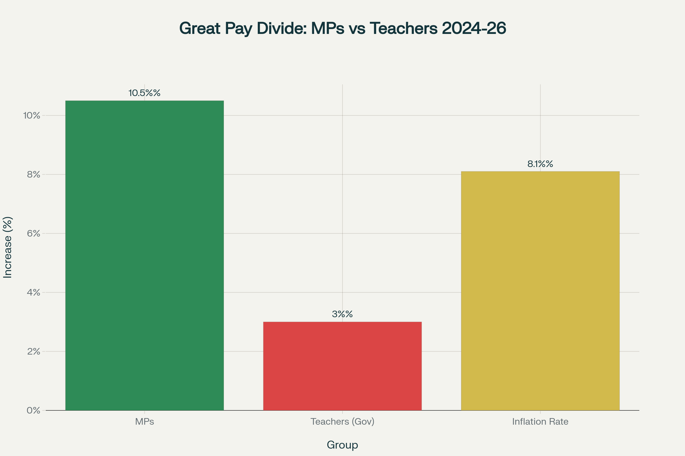 Comparison showing MPs receive 10.5% pay increases while teachers are offered only 3% against 8.1% inflation