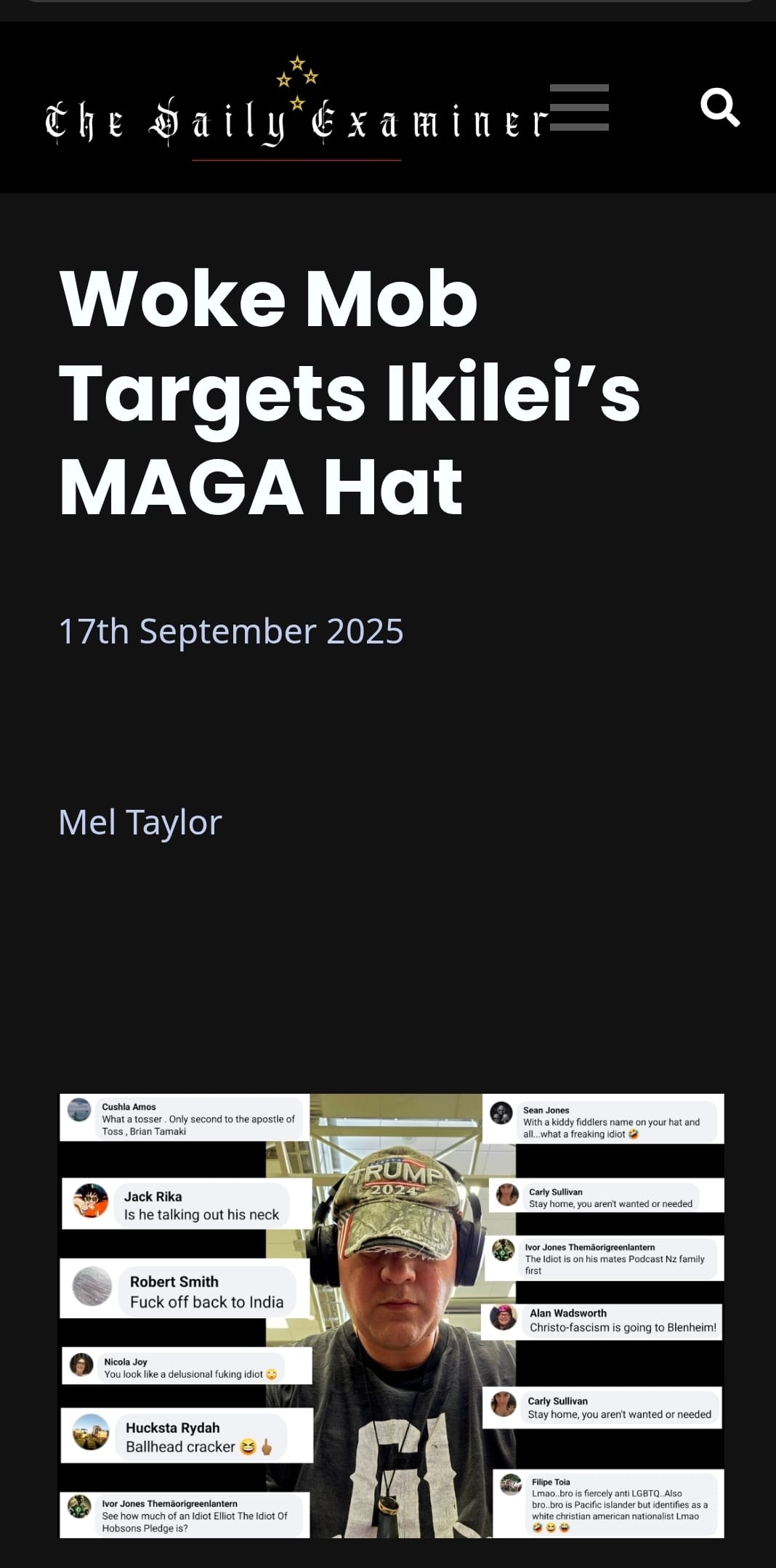 https://www.thedailyexaminer.co.nz/woke-mob-targets-ikileis-maga-hat/