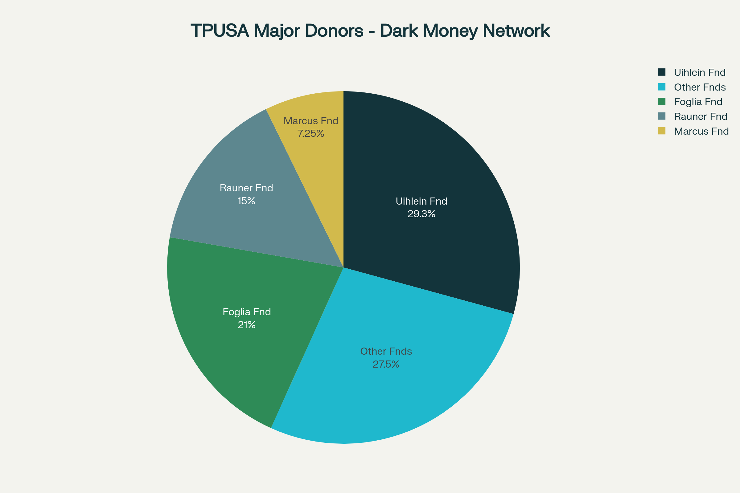 Charlie Kirk built his empire on the systematic dehumanization of anyone who challenged white Christian supremacy. Through Turning Point USA, he received millions in funding from wealthy conservative donors, transforming teenage grievance into a multi-million-dollar hate industry. The organization's budget grew from $78,000 in 2013 to $55.8 million in 2021, funded by figures like the Ed Uihlein Family Foundation ($275,000), the Rauner Family Foundation ($150,000), and the Marcus Foundation ($72,500).